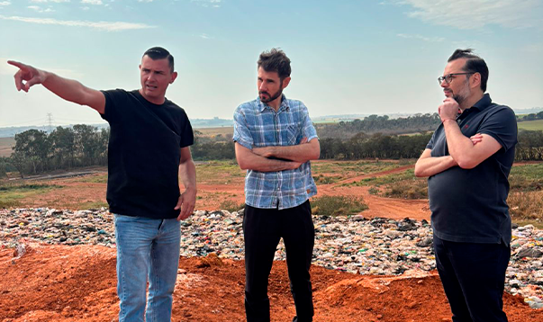 Na manhã desta quarta-feira, Felipe Dall e Carlos Silva Filho foram levados a uma visita técnica para conhecer de perto a realidade do município. A comitiva inspecionou o Aterro Sanitário Municipal, o Aterro de Inertes Municipal e a Lagoa de Tratamento de Água e Esgoto. Houve também o encontro com os membros da Cooperativa de Catadores de Reciclável, que representa o contato direto com o elo central da cadeia de reciclagem da cidade.