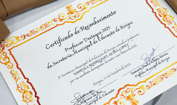 Entre os 18 professores indicados neste ano de 2025, uma foi escolhida como Professor Destaque 2025 da Rede Municipal de Ensino. A professora que estará na Câmara representando os demais profissionais da rede municipal de ensino, nesta terça-feira (14/10), será Vanessa Rodrigues Alves Lopes, que atua na EM Prof.ª Adelina Bernadette dos Santos Pacitti.