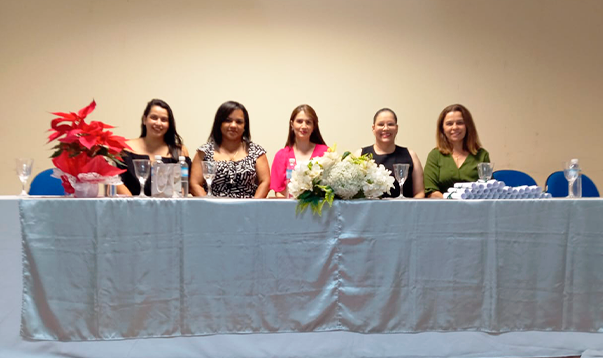 As representantes da Secretaria de Saúde, Giseli Debortoli, chefe da Divisão de Atenção Básica de Saúde, Daiane Godinho Pinheiro, chefe da Divisão de Vigilância e Controle de Vetores, que compuseram a mesa de autoridades fizeram destaque à relevância do curso para o aprimoramento dos serviços oferecidos à população.