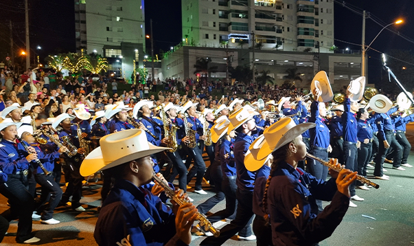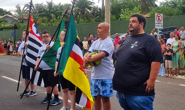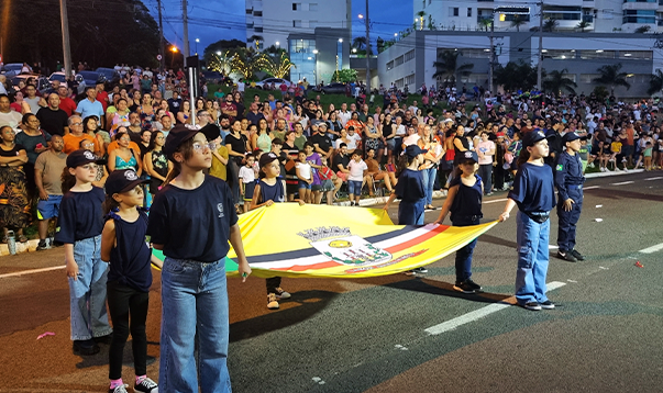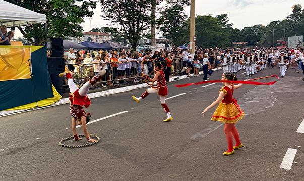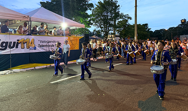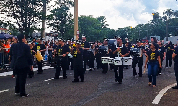 A Secretaria Municipal de Educação levou os alunos de 18 Escolas Municipais (EMs) para o desfile. Elas apresentaram recortes dos projetos desenvolvidos ao longo deste ano de 2025 e um pouco do resultado obtido com a volta do projeto Fanfarra nas Escolas, retomado no segundo semestre deste ano.