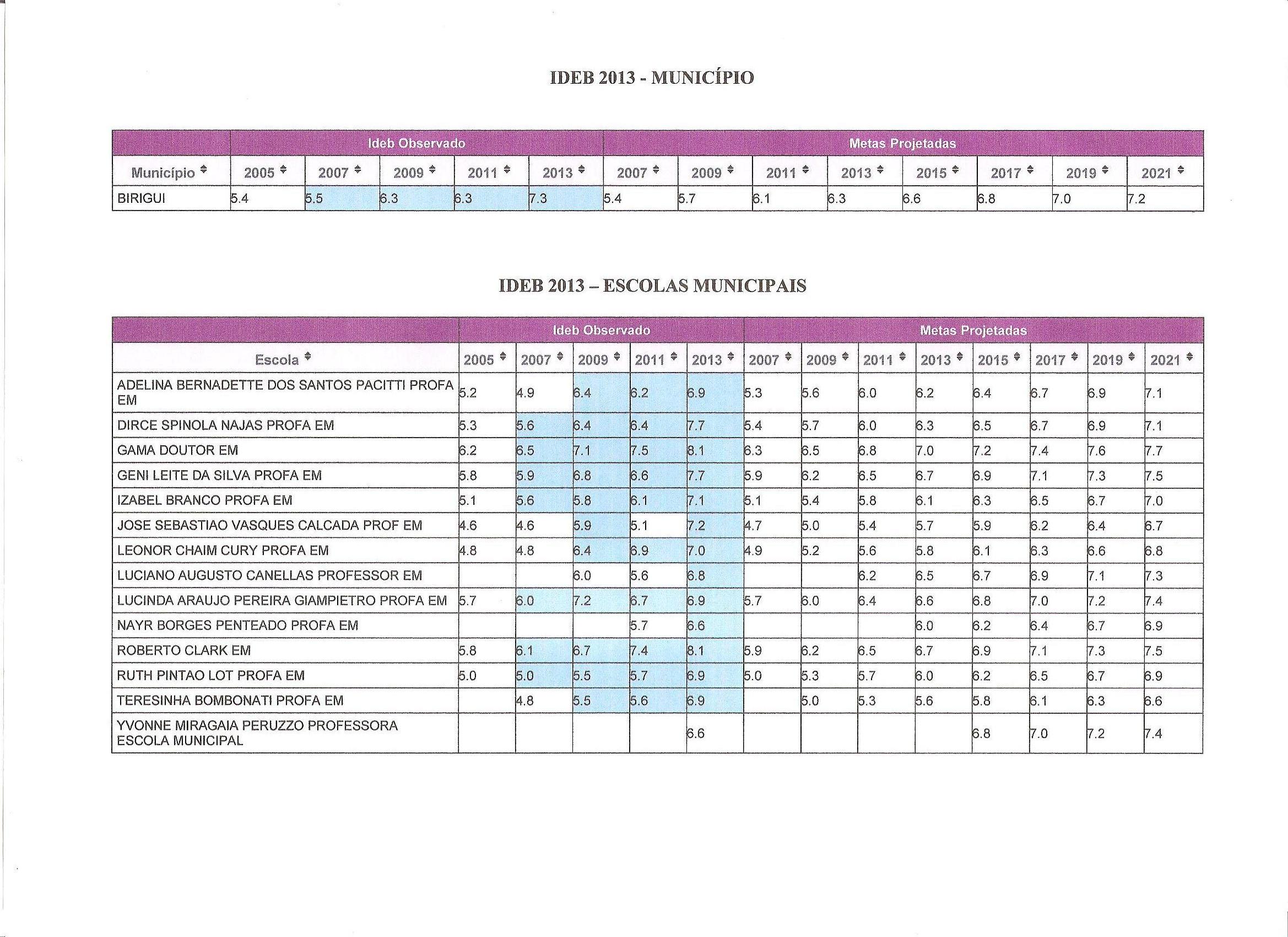 O Município de Birigui obteve 7.3 pontos, sendo maior que a meta de 7.2 estipulada para ser alcançada somente em 2021. Importante ressaltar, que todas as escolas municipais superaram a meta estipulada.