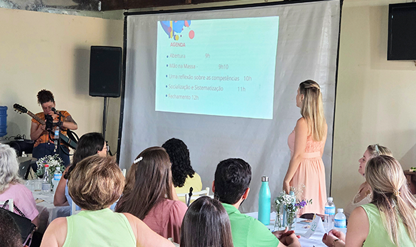 A iniciativa foi comunicada durante encontro de formação realizado na última sexta-feira (19/12), em um espaço de eventos no bairro Taquari. O evento contou com as presenças da prefeita Samanta Borini, do secretário de Educação, Fábio Mariano da Paz, da coordenadora da Oficina Pedagógica, Sônia Regina Guaraldo, e profissionais que atuam na liderança dos centros de educação infantil e escolas municipais.