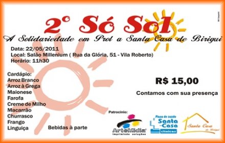 A Santa Casa de Birigui irá realizar no dia 22 de maio de 2011, um almoço beneficente para arrecadar fundos financeiros para melhorias no hospital.