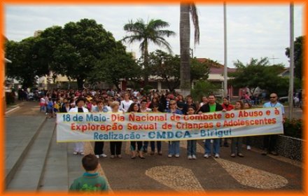 O Governo Municipal de Birigui, por meio de sua Secretaria de Assistência e Desenvolvimento Social, através do CMDCA – Conselho Municipal dos Direitos da Criança e o Adolescente realizou na manhã de hoje quinta-feira(19), uma caminhada para lembrar o dia 18 de maio – Dia Nacional de Combate ao Abuso e à Exploração Sexual de Crianças e Adolescentes.